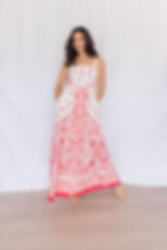 VESTIDO MIDI CON OLANES BLANCO/ROJO